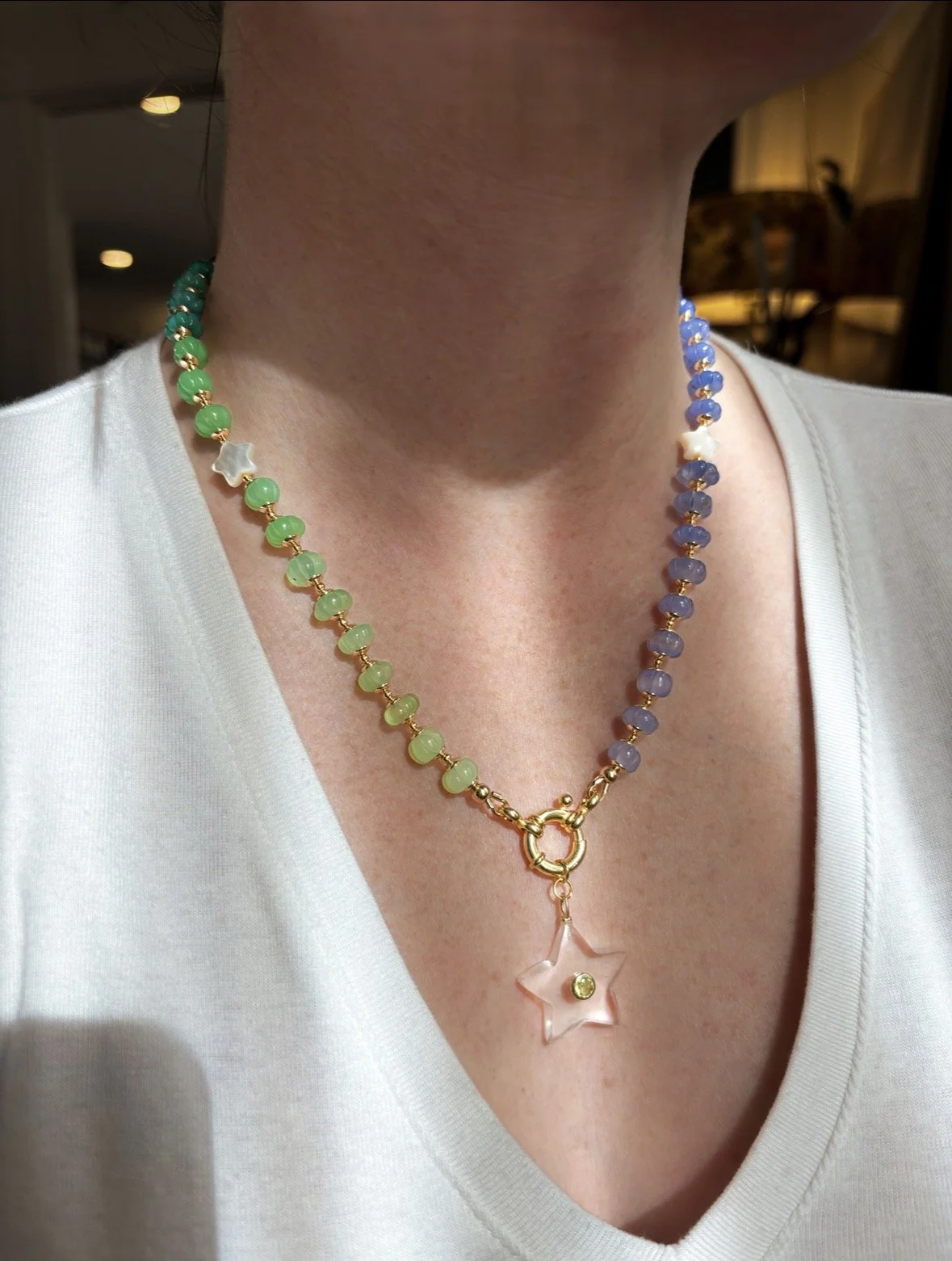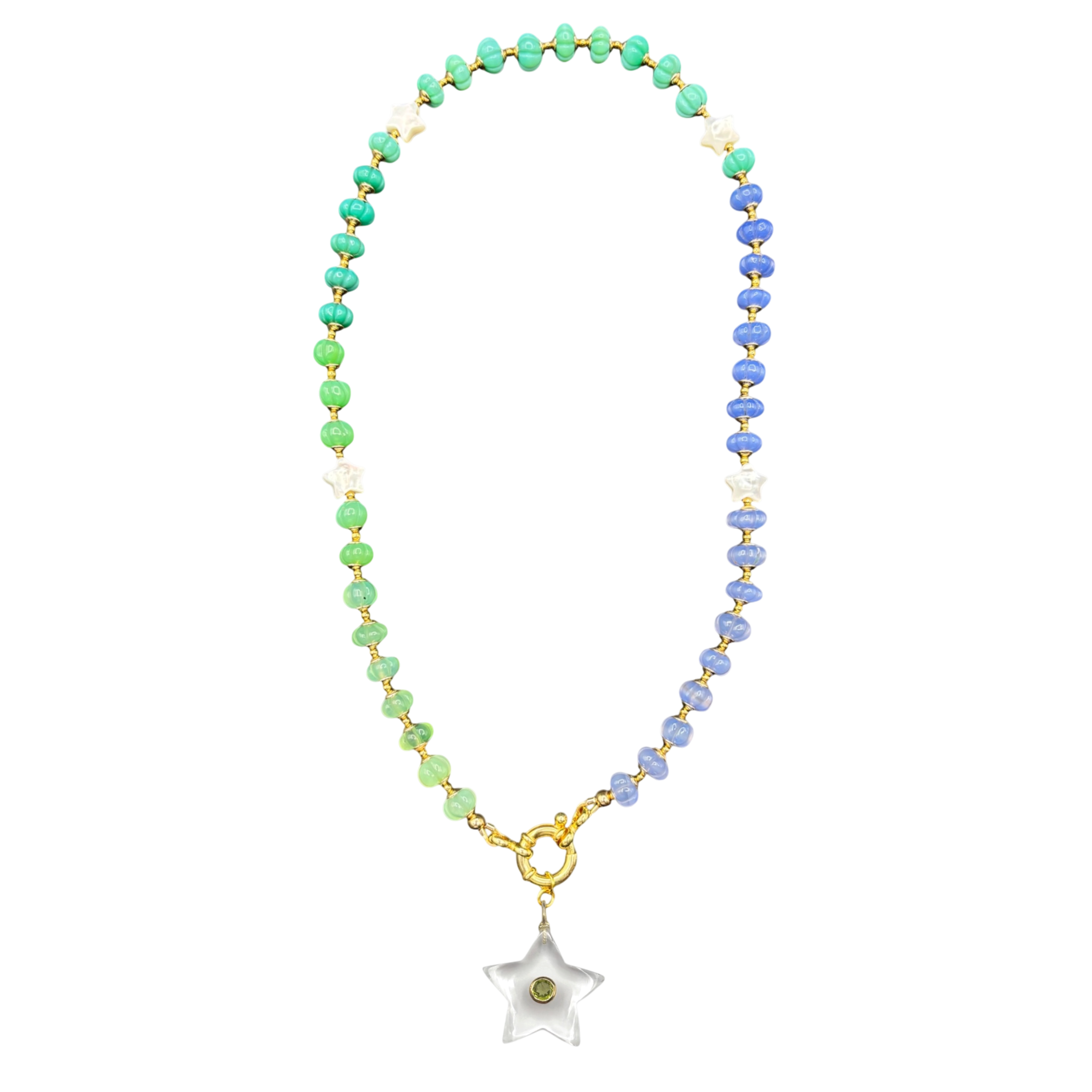 Clear Quartz Pendant with Peridot Stud Center + Vermeil Hardware